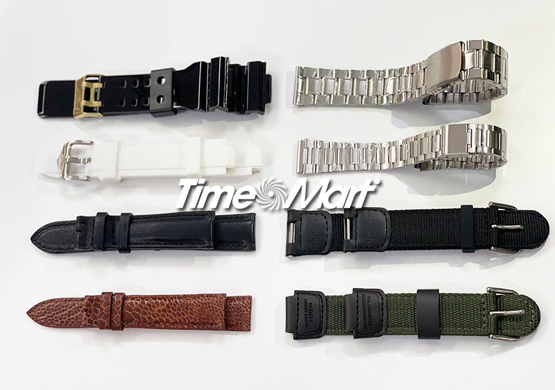 *Hình ảnh các loại dây Casio chính hãng: silicone, kim loại, da - đầy đủ màu sắc và chủng loại*