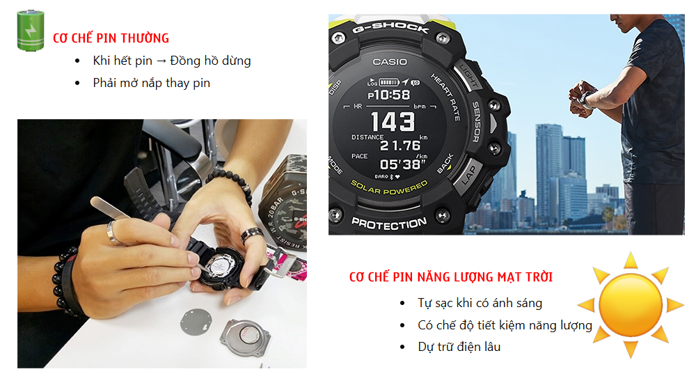SO SÁNH PIN G-SHOCK THƯỜNG VÀ PIN NĂNG LƯỢNG MẶT TRỜI