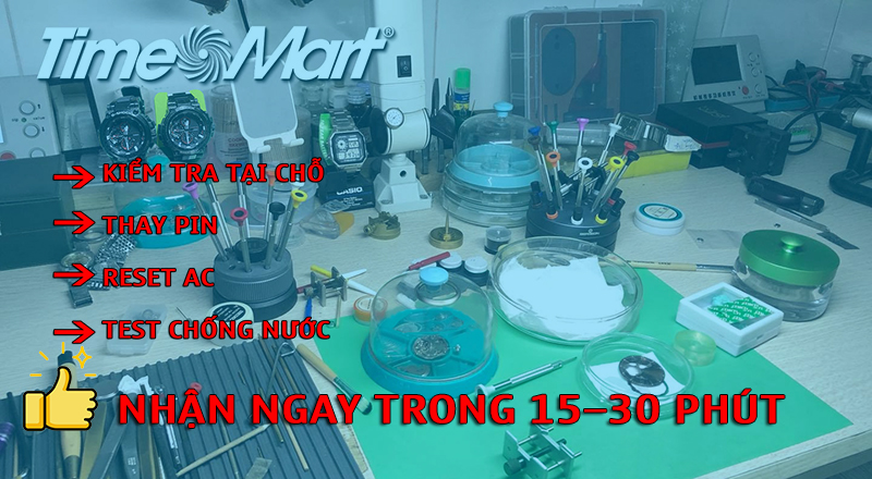 Giá thay pin tại Timemart thấp hơn 30-40% so với trung tâm bảo hành nhưng vẫn dùng pin chính hãng Nhật/Thụy Sĩ.