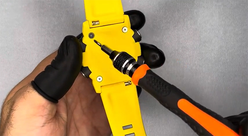 GA-2000 có nắp lưng dạng ốc vít (4 ốc). Kỹ thuật viên dùng tua vít chuyên dụng để tháo ốc, tránh làm trầy xước vỏ.