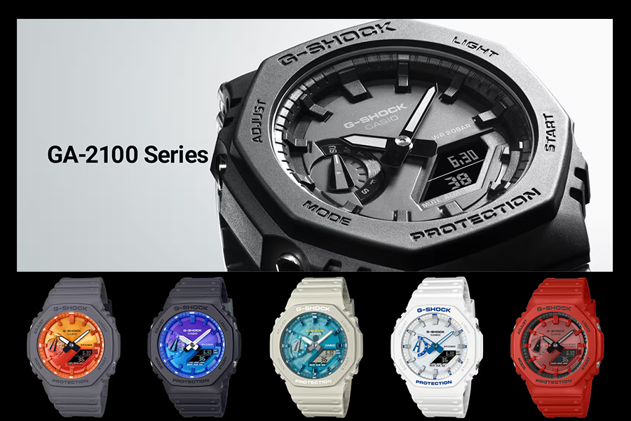 GA-2100, được cộng đồng yêu đồng hồ ưu ái gọi là "CasiOak", là một trong những dòng G-Shock đột phá nhất của Casio trong những năm gần đây. Ra mắt lần đầu năm 2019, GA-2100 gây ấn tượng với thiết kế mặt số bát giác mỏng nhất lịch sử G-Shock, lấy cảm hứng từ những chiếc đồng hồ sang trọng nhưng vẫn giữ nguyên DNA chống sốc huyền thoại.