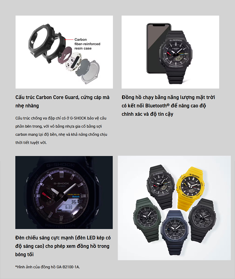 | GA-B2100 | Tough Solar | Bluetooth | Năng lượng mặt trời + kết nối thông minh |