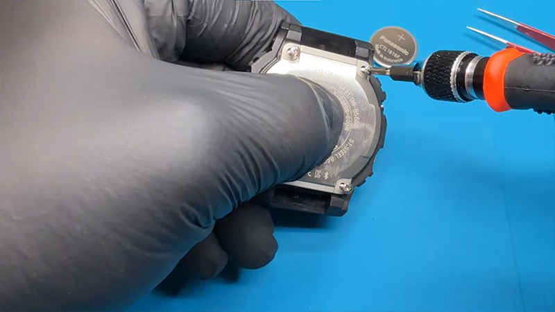 GW-B5600 có nắp lưng dạng ốc vít (4 ốc). Kỹ thuật viên dùng tua vít chuyên dụng để tháo ốc, tránh làm trầy xước vỏ.